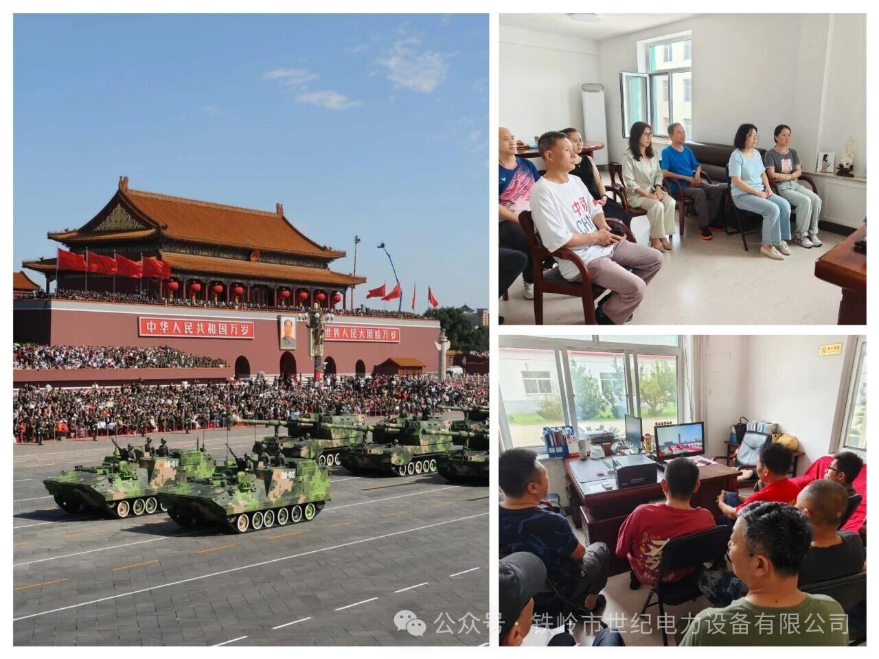 9月3日上午,紀念中國人民抗日戰(zhàn)爭暨世界反法西斯戰(zhàn)爭勝利80周年閱兵盛典啟幕,鐵嶺市世紀電力設備有限公司全體員工以集中觀看的方式,同步見證莊嚴時刻,用集體行動詮釋團隊凝聚力。